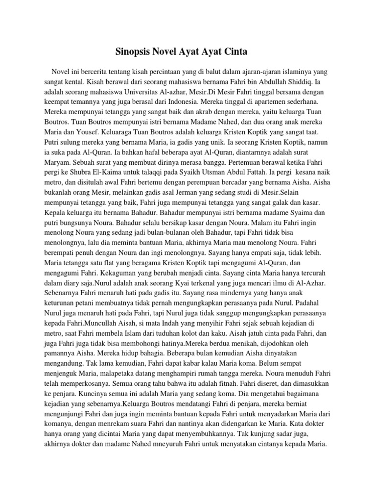 Novel Ayat Ayat Cinta karya Habiburrahman El Shirazy telah menjadi buku yang sangat populer di Indonesia. Novel ini menceritakan tentang perjalanan cinta seorang pemuda bernama Fahri dalam menemukan makna cinta sejati. Namun, selain itu, novel ini juga memiliki unsur intrinsik yang sangat menarik untuk dianalisis. Dalam artikel ini, kita akan membahas analisis unsur intrinsik novel Ayat Ayat Cinta.